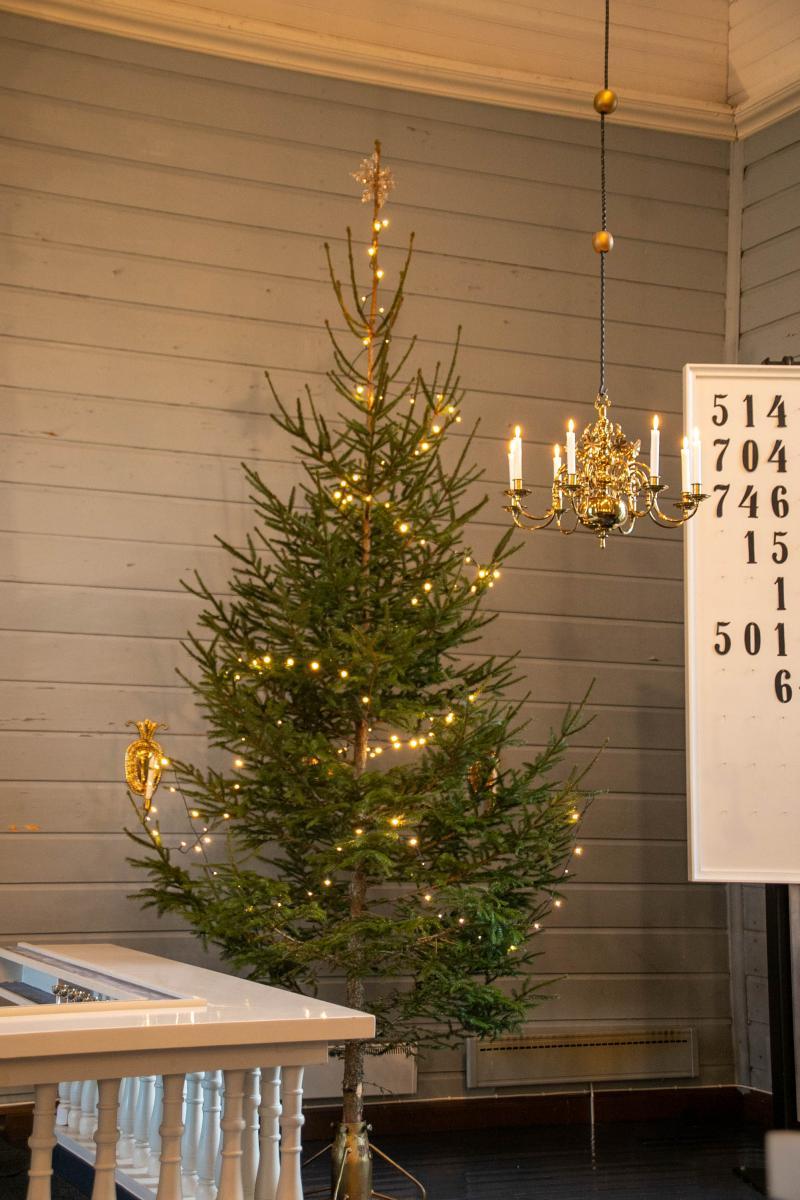 Kuusi kirkkosalissa.