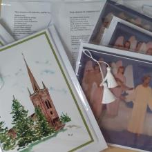Seurakunta on hankkinut uusia suruadresseja myytäväksi lähetystyön hyväksi. Adresseja on kahdella erilaisella kansikuvalla. Toinen on Leena Pyykön akvarelli Someron kirkosta ja toisessa on valokuva siunauskappelin seinän Onni Ojan freskosta Paratiisin portilla.