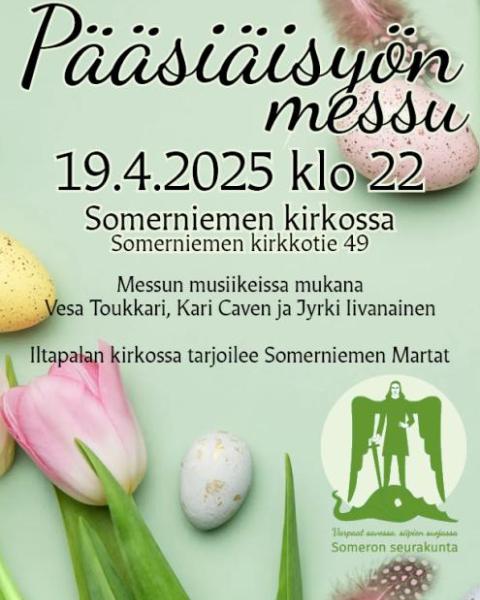 Pääsiäisyön messu Somerniemen kirkossa 19.4. kello 22