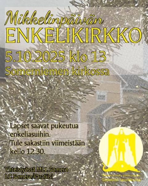 Mikkelinpäivänä vietetään perinteistä enkelikirkkoa Somerniemen kirkossa jumalanpalveluksessa. Yhteistyössä MLL Somero ja LC Somero/Paratiisi.