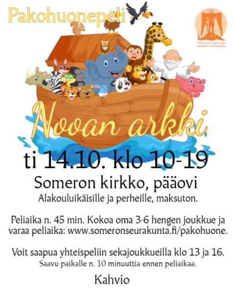 Lapsiperheille ja alakouluikäisille suunnattu pakohuonepeli Someron kirkossa.