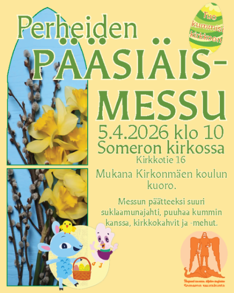 Messun päätteeksi suuri suklaamunajahti, puuha kummin kanssa sekä kirkkomehut ja -kahvit.